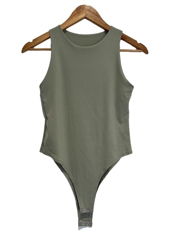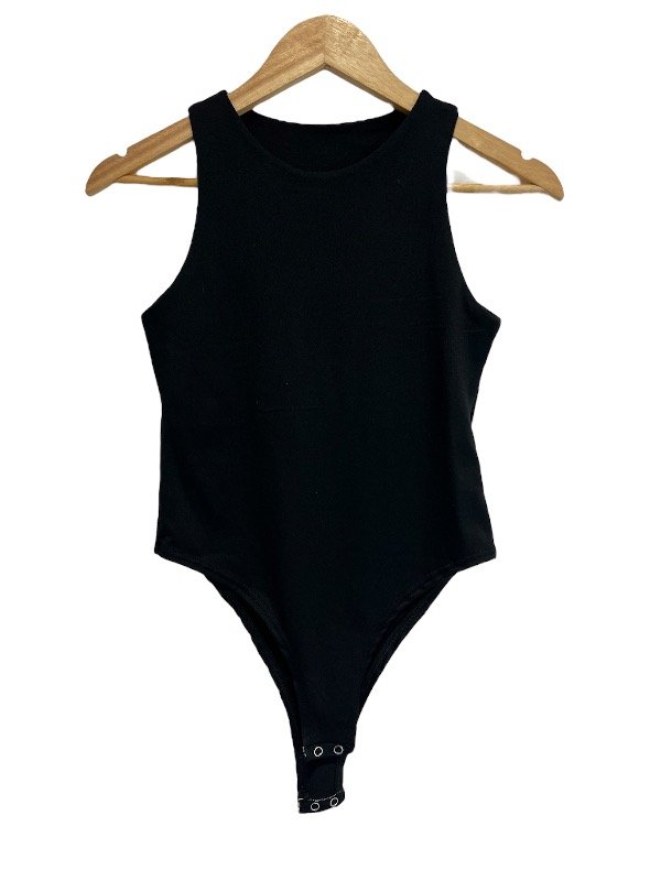 Body entallado confeccionado en tejido elástico compuesto por viscosa ,algodón, elastano (modal soft) , escote cerrado , Cierre en bajo con botones a presión. Talle único, adaptan hasta talle L aprox .