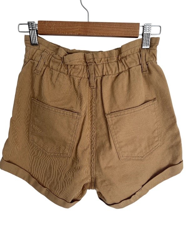 SHORT PAPPERBAG CON ELÁSTICO CINTURA TIRO ALTO. LAVADO AL TONO SUAVIZADO. BOTÓN METÁLICO CON TACHAS Y CIERRE FRONTAL CON CREMALLERA. COMPOSICIÓN DE TELA 100% ALGODÓN.