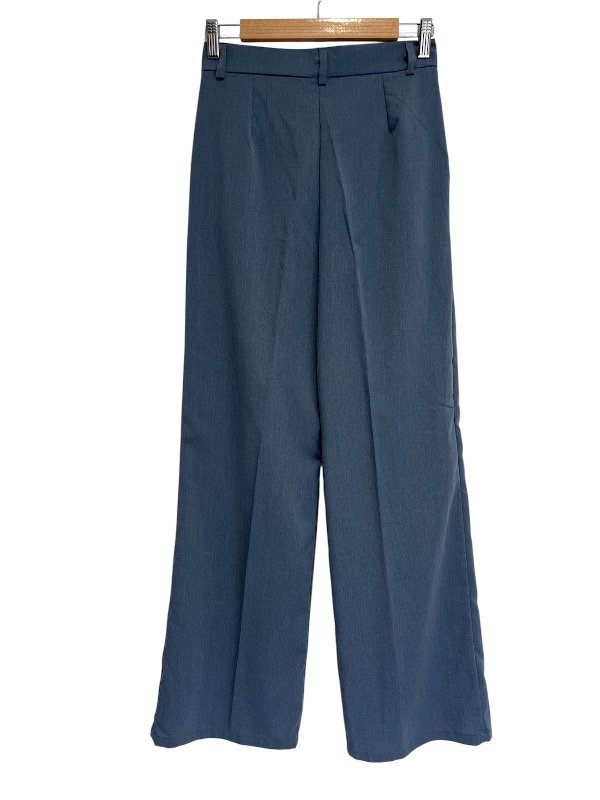Pantalón palazzo pinzado , tiro alto, bolsillos delanteros. Con pasa cinto. Cierre y botón parte del frente.