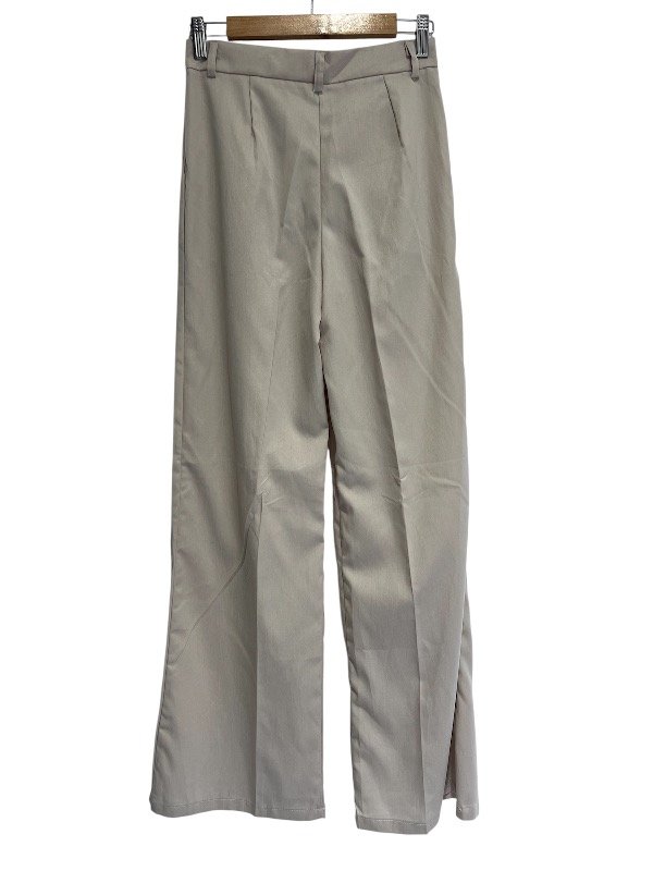 Pantalón palazzo pinzado , tiro alto, bolsillos delanteros. Con pasa cinto. Cierre y botón parte del frente.