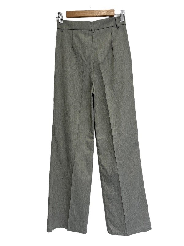 Pantalón palazzo pinzado , tiro alto, bolsillos delanteros. Con pasa cinto. Cierre y botón parte del frente.
