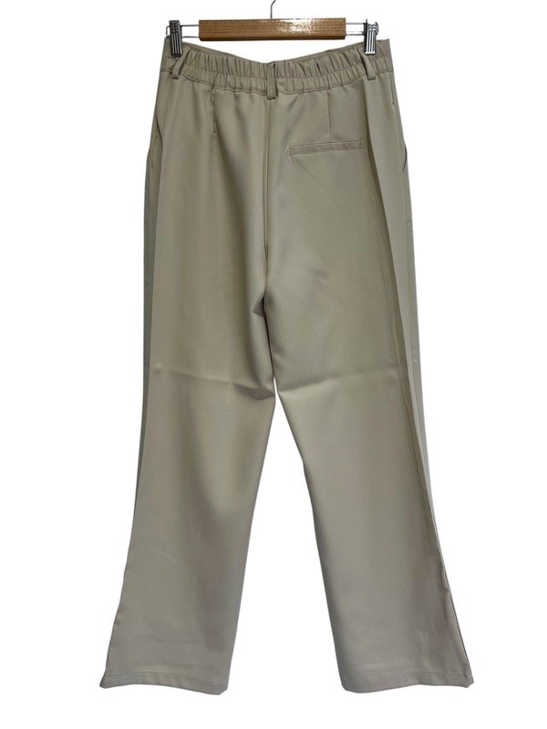 Pantalón palazzo , tiro alto, bolsillos delanteros. Con cintura elástica en espalda y pasa cinto. Cierre y botón parte del frente.