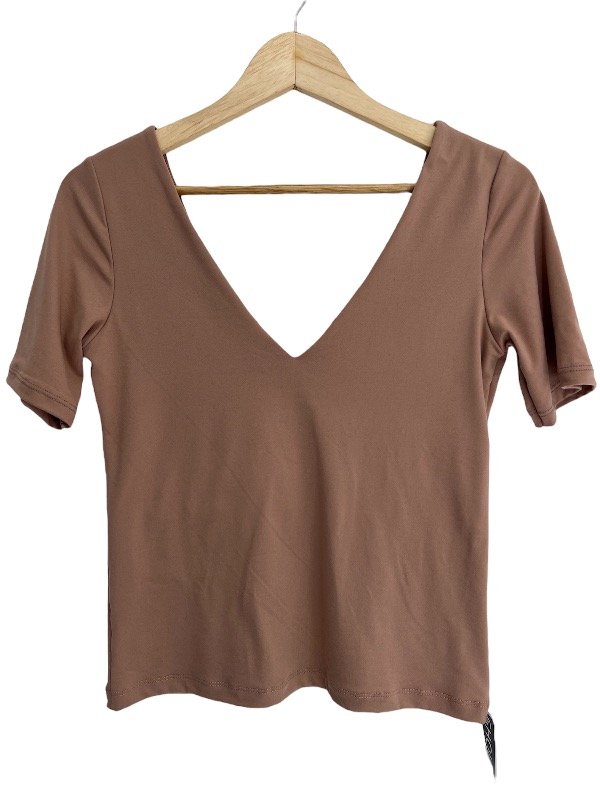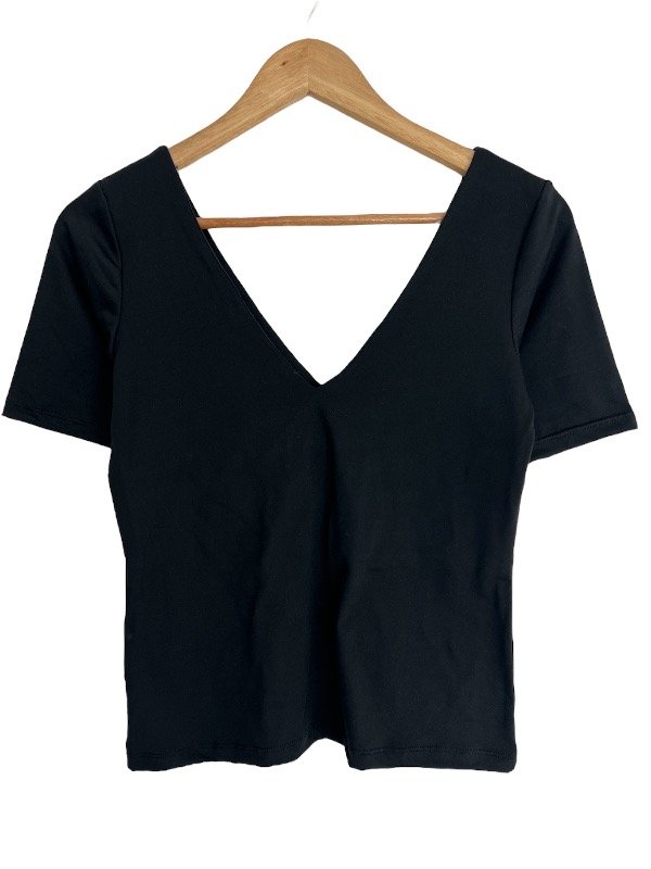 Remera mangas cortas , confeccionado en tejido elástico compuesto por viscosa ,algodón, elastano (modal soft). Tela doble en mitad superior frente y espalda Escote V frente y espalda. TALLE S.